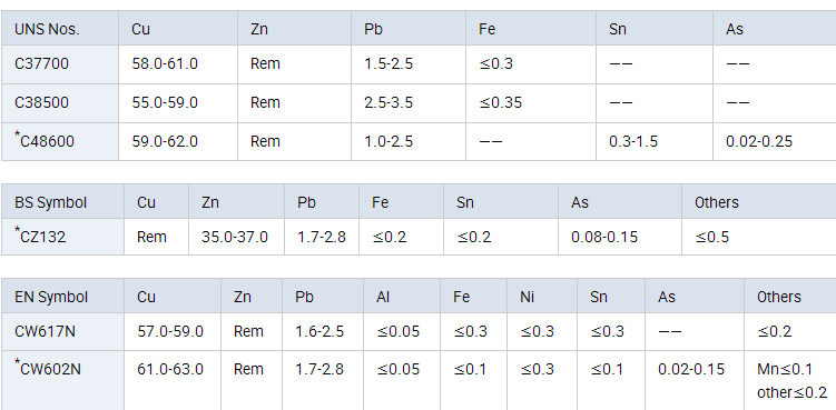 Brass Chemical Composition % (Mass Fraction) Symbol with * is DZR Brass
